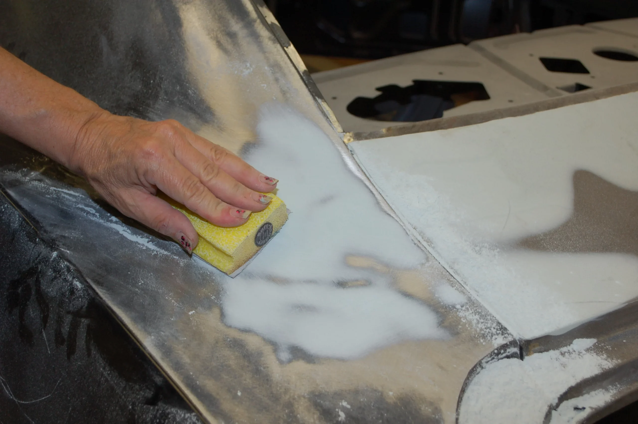 Hiontatöiden jälkeen, pinta putsataan huolellisest rasvanpesuaineella. Näin varmistetaan, ettei vaurioalueelle jää epäpuhtauksia, sekä kitti tarttuu niinkuin kuuluu.
